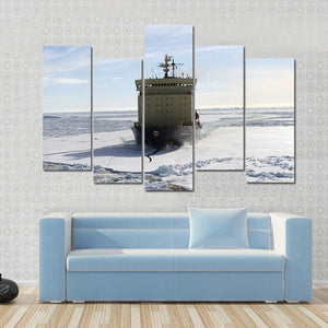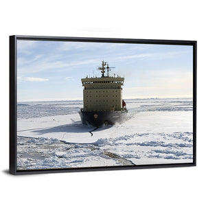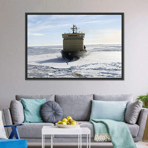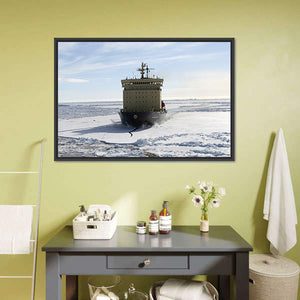This stunning canvas art features an icebreaker ship navigating through a harsh arctic landscape. With its realistic portrayal and cool palette of blues and whites, it captures the cold beauty of Antarctica, making it a striking addition to your decor.