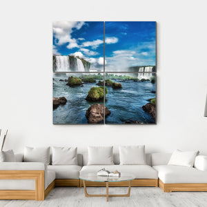 Bring the beauty of Iguacu Falls into your space with this stunning canvas artwork. Featuring a powerful waterfall cascading over lush rocks, it captures the dynamic interplay of water and sky. Ideal for nature lovers and those seeking a serene, calming atmosphere.