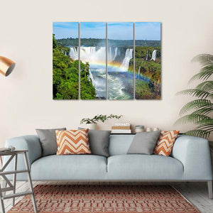 This vibrant piece captures the breathtaking Iguazu Falls, showcasing a dynamic flow of water accented by a stunning rainbow. The lush greenery and mist create a natural wonder that brings a powerful, awe-inspiring vibe to any space.