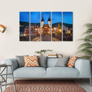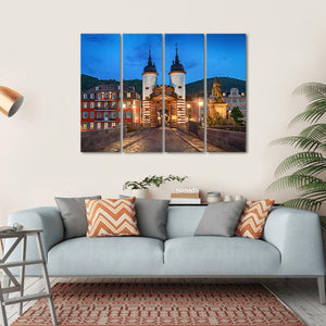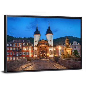Capture the tranquility of twilight in Heidelberg, Germany with this stunning canvas art featuring the old bridge and gate tower surrounded by historic buildings. The serene palette of blues, browns, and oranges invites a peaceful atmosphere, making it an eye-catching addition to any room.