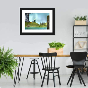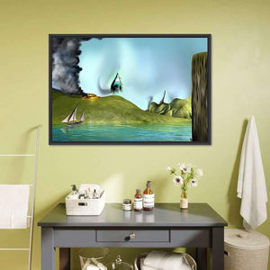Surreal Eye Above Volcano and Sailboat Canvas Wall Art