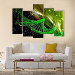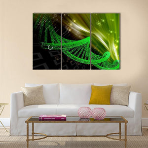 Glowing Green Dna Helix with Binary Code Canvas Wall Art