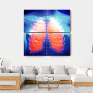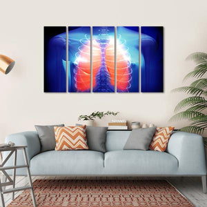 This canvas art features a striking illustration of human lungs, highlighted with a vibrant blue anatomical overlay and glowing red elements. Its modern and scientific vibe makes it a compelling addition to any space that values information and beauty.