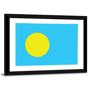 Palau Flag Canvas Wall Art presents the Palau flag as a bold, minimalist graphic: a centered yellow circle on a vivid blue field. Its simple, clean composition and modern palette fit well in modern or minimalist interiors.