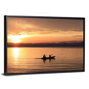 Two Kayakers Silhouetted at Sunset Canvas Wall Art