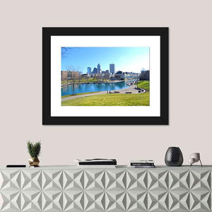 Experience the serene beauty of an Indiana city skyline with this stunning canvas wall art. Featuring tall buildings reflecting over calm water, this piece evokes a bright and urban atmosphere that breathes life into any space.