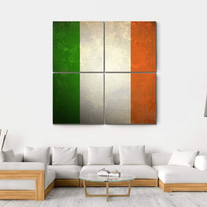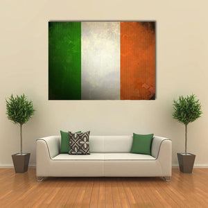 This canvas art features a grunge interpretation of the Irish flag, blending vibrant green, white, and orange hues. The textured effect gives it an aged appearance, evoking a sense of patriotism and history.
