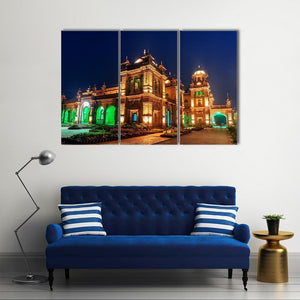 This canvas art features the grand architecture of Islamia College Peshawar, brilliantly illuminated against a night sky. The intricate details of the building and lush garden beds add a captivating touch to any wall.
