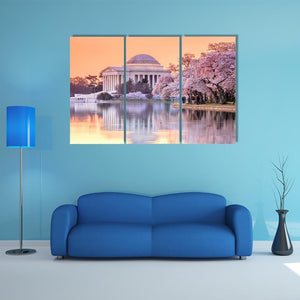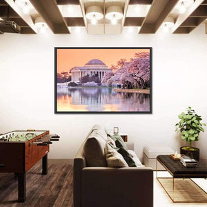 This vibrant canvas art showcases the Thomas Jefferson Memorial surrounded by blooming cherry blossoms at the Tidal Basin. With a serene and peaceful vibe, it captures the beauty of spring reflections in water, making it a lovely addition to any space.