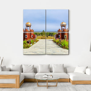 This captivating canvas art features the serene landscapes of the Jingbei Grassland. With its harmonious blend of wooden towers, golden domes, and lush gardens, it brings a welcoming and architectural charm to any space.