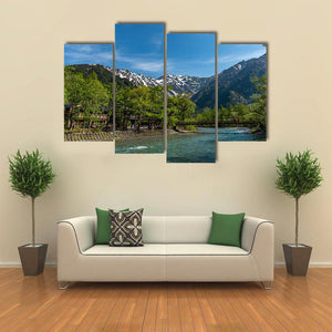 Kamikochi River with Snow-capped Mountains Canvas Wall Art