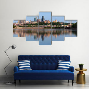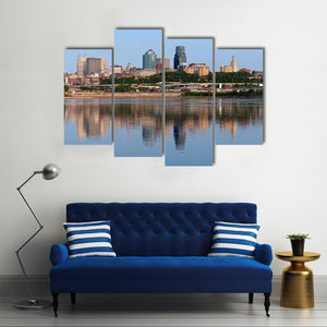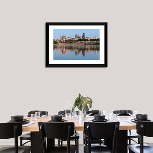 This piece captures the serene beauty of Kansas City's skyline, highlighting a calm cityscape reflected in tranquil water. It's a modern and photorealistic artwork that brings a touch of sophistication to any space.