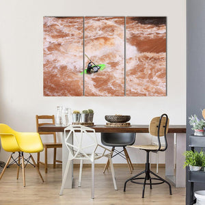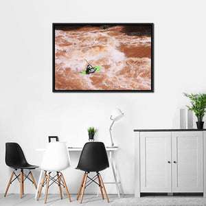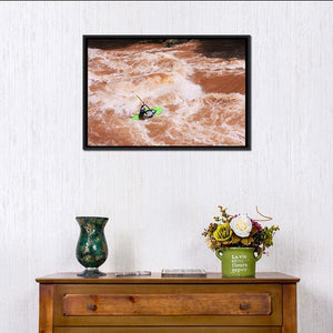 This canvas features a dynamic action shot of a kayaker navigating turbulent whitewater rapids. The intense mood of this artwork invites a sense of adventure, making it a striking addition to your wall decor.