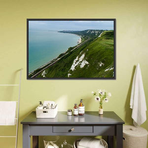This canvas art beautifully captures the serene coastal cliffs and ocean views of Kent, England. The photorealistic style showcases the striking contrast of green cliffs against the blue water, creating a scenic escape for any space.