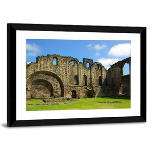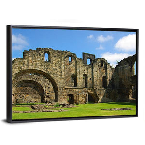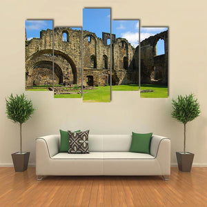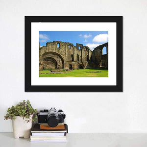 This canvas art captures the serene beauty of ancient ruins set against a wide, blue sky. Featuring crumbling stone walls and arched doorways amidst a grassy field, it brings a rustic and historic charm to your decor.