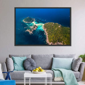 Experience the serene beauty of Koh Tao Island with this captivating canvas wall art. Featuring an aerial view of lush greenery, turquoise waters, and sandy beaches, this piece evokes a tranquil vacation vibe, perfect for any nature lover.