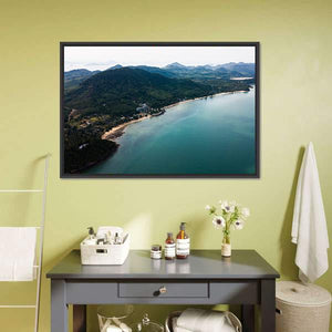 Experience the serene beauty of Koh Yao Noi with this aerial view canvas art. Showcasing a harmonious blend of coastline, mountains, and clear water, this piece captures the natural essence of Thailand's tropical landscape.