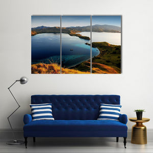 This canvas art captures the serene beauty of Komodo Island, featuring a stunning aerial view of the coastline and turquoise waters. With a vibrant palette of blue and green, this piece evokes a peaceful and tropical atmosphere.