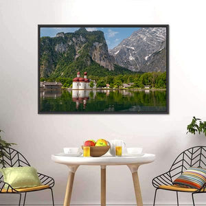 Konigssee Lake with Twin Red-domed Church Canvas Wall Art