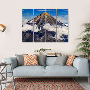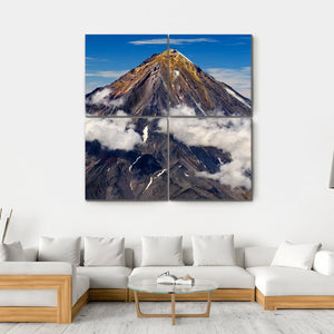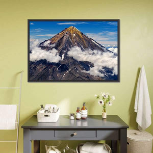 This stunning canvas art captures the majestic Koryaksky Volcano in Russia, surrounded by wispy clouds and a serene sky. The blue, gray, and brown palette enhances the awe-inspiring nature of this landscape, making it a perfect addition to your wall decor.