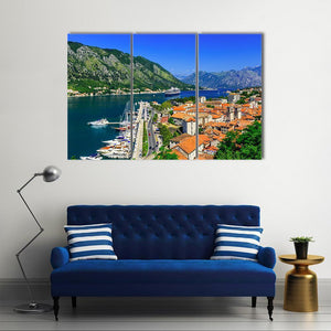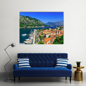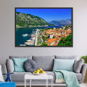 This vibrant canvas captures the stunning bay of Kotor with its scenic town and majestic mountains. Rich shades of blue and green evoke a sunny day, making it a delightful addition to your wall decor.