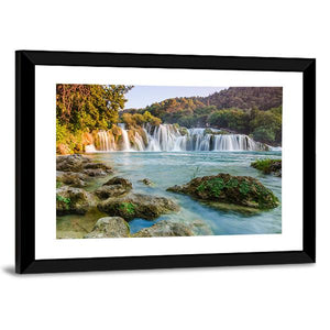 Experience the serene beauty of the Krka River waterfalls with this stunning canvas wall art. Featuring vibrant green foliage on rocks and sunlight glinting on the flowing water, this piece brings a natural and peaceful ambiance to any space.