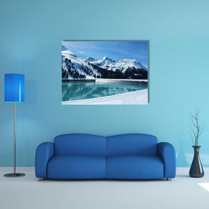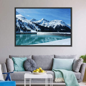 Kuhtai Dam Reservoir with Snowy Mountains Canvas Wall Art