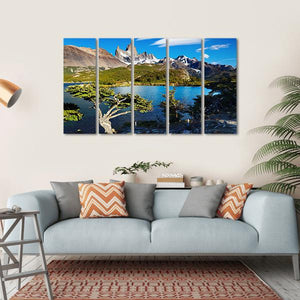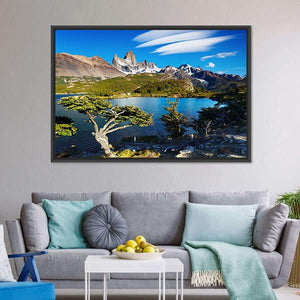 Immerse yourself in the serene beauty of Laguna Capri, featuring majestic mountains and a tranquil lake. This naturalistic artwork captures the essence of nature with its rich blue and green palette, bringing a sense of calm and grandeur to your space.