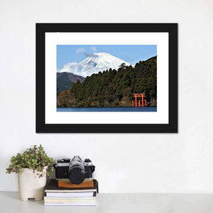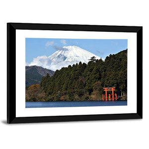 Capture the serene beauty of Lake Ashi with this stunning canvas print featuring Mount Fuji and a vermilion torii gate. Its realistic style and calming color palette create a majestic cultural atmosphere, perfect for adding a touch of nature to your décor.