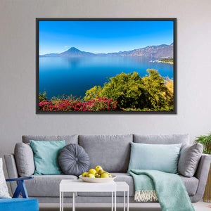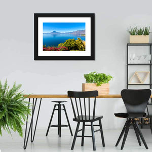 This canvas art captures the serene beauty of Lake Atitlan, framed by majestic volcanoes and lush mountains. With its photorealistic style and tranquil colors, it creates a peaceful atmosphere, perfect for nature lovers.