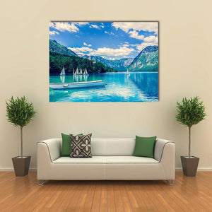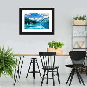 This landscape artwork features the serene beauty of Lake Bled, surrounded by majestic mountains. The vibrant blues and greens convey a calm atmosphere, making it a perfect addition to any nature-inspired décor.