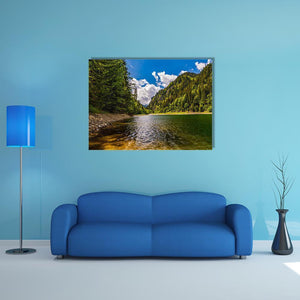 This landscape artwork captures the serene beauty of a lake nestled among the Parang Mountains in Romania. With a tranquil palette of green, blue, and brown, it evokes a natural and peaceful atmosphere, perfect for bringing life to your wall.