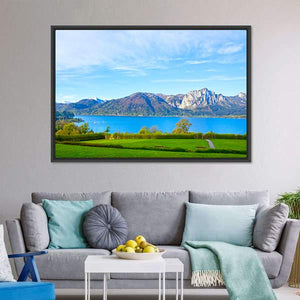 Austrian Lake Landscape with Mountains Canvas Wall Art