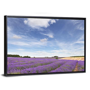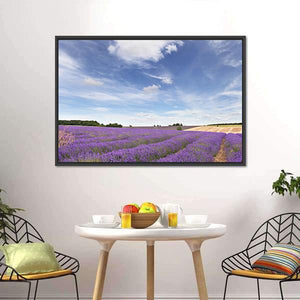 This peaceful canvas art showcases a serene lavender field under a blue sky adorned with wispy clouds. Its expansive view and gentle palette of purple and blue evoke a calming atmosphere, perfect for any room in your home.