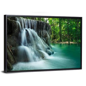 This serene canvas art features a beautiful waterfall surrounded by lush greenery, capturing the tranquil essence of nature. The photorealistic style brings to life the smooth water effect, making it a striking addition to your space.