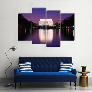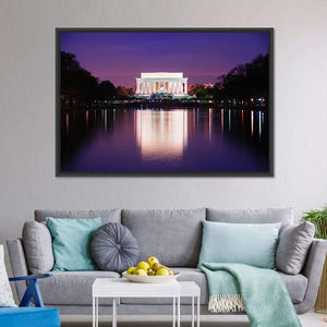 This beautiful canvas captures the Lincoln Memorial at sunset, reflecting serene colors of purple, blue, and pink on the water. Designed to evoke a tranquil atmosphere, this artwork is an ideal addition to your wall decor.