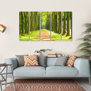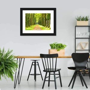This canvas artwork captures a tranquil forest path lined with linden trees, evoking a serene and peaceful atmosphere. The sunlight filters through the lush green leaves, creating a natural setting that brings a touch of the outdoors into your home.