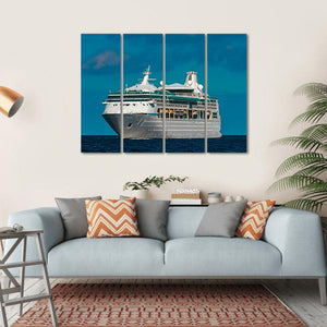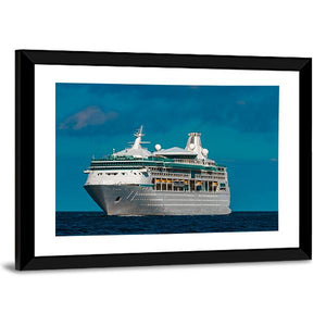 This canvas features a majestic cruise ship sailing through deep blue waters under a serene sky dotted with fluffy clouds. The calm atmosphere and photorealistic style evoke a sense of vastness, making it a perfect addition to any space seeking a touch of tranquility.