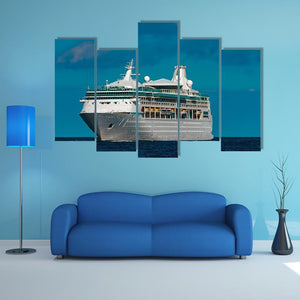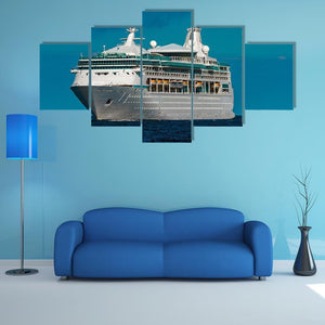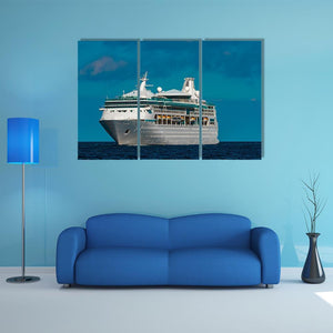 A realistic canvas print of a luxury cruise liner moving across a blue-and-gray ocean, with sky and sea arranged using the rule of thirds to suggest travel and motion. The blue, white, and gray palette keeps the scene calm and travel-focused. Suited to modern homes and nautical-themed room décor.