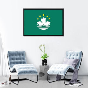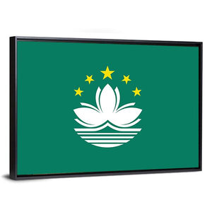 The Macau Flag Canvas Wall Art features a beautiful design rooted in symbolism, showcasing a five-petaled lotus flower and five stars. In calming shades of green, white, and yellow, this piece brings a serene vibe to any room.