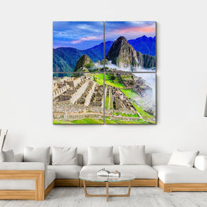 Explore the serene beauty of Machu Picchu with this striking wall art. The artwork captures the majestic ruins surrounded by lush mountains, vibrant blue skies, and soft clouds, creating an awe-inspiring atmosphere perfect for any space.
