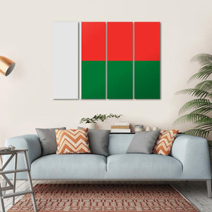 This modern canvas art captures the essence of the Madagascar flag through bold geometric shapes. Featuring a vertical white rectangle alongside horizontal red and green panels, it offers a clean and minimalist aesthetic, perfect for enhancing any room's décor.