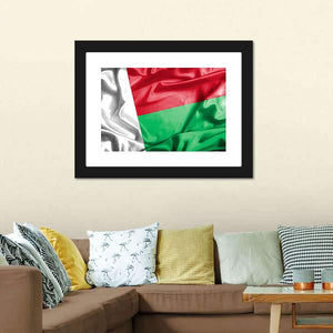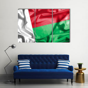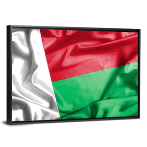 This canvas features the Madagascar flag with a wavy fabric texture and an asymmetrical composition. The red, green, and white palette creates a modern, patriotic mood. It works well in contemporary home decor or any space that calls for a clear national statement.