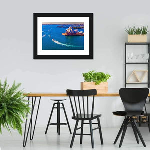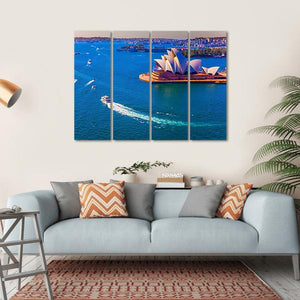 This vibrant canvas captures the beauty of Sydney Harbor, showcasing the iconic Sydney Opera House against a backdrop of vast blue waters and a lively boat scene. Its sunny, photorealistic style adds a sense of energy and charm to any space.