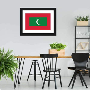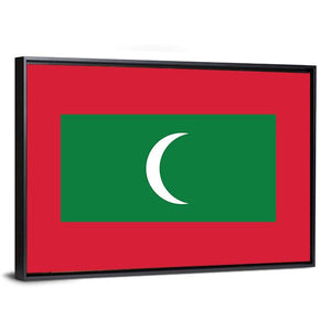 This canvas art features a striking design of the Maldives flag, showcasing a white crescent moon on a vibrant green field, set against a bold red backdrop. Its minimalist and modern aesthetic brings a simple yet symbolic touch to your decor.