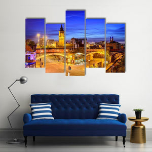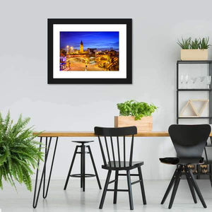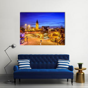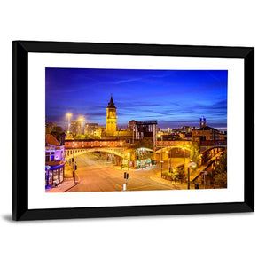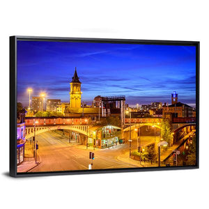 This canvas captures the urban beauty of Manchester at night. Featuring iconic buildings, a railway bridge, and glowing street lights, it adds a vibrant touch to your space.