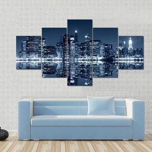 This canvas art captures the tranquility of the New York City skyline at night, featuring stunning skyscrapers and a reflective waterfront. Its modern design complements a variety of decor styles.