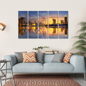 This canvas art beautifully captures the Singapore skyline, featuring iconic sights like Marina Bay Sands and the Singapore Flyer. The vibrant colors and serene water reflections create an inviting atmosphere, perfect for enhancing any wall space.