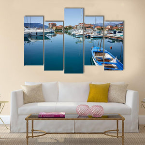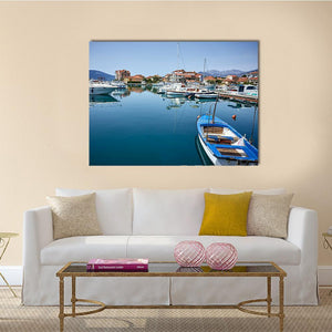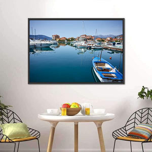 Boats and Yachts in Sunny Harbor Canvas Wall Art