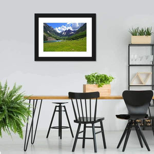 Capture the serene beauty of the Maroon Bells in this canvas wall art featuring a tranquil mountain lake surrounded by snow-capped peaks, lush green valleys, and a vibrant blue sky. This landscape print is a perfect addition to any nature lover's decor.